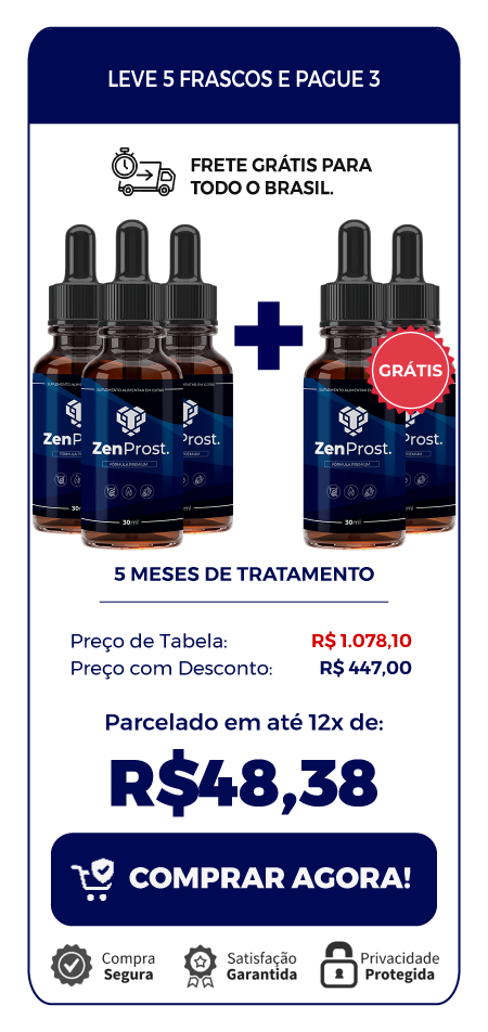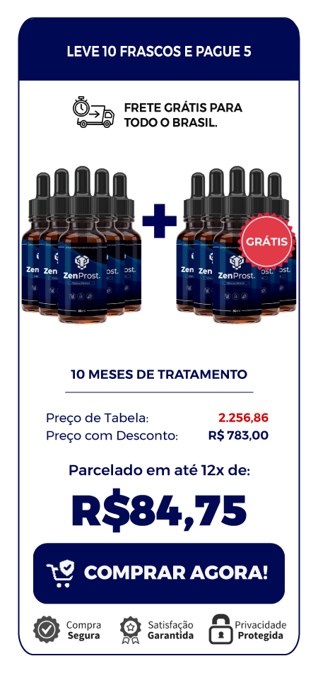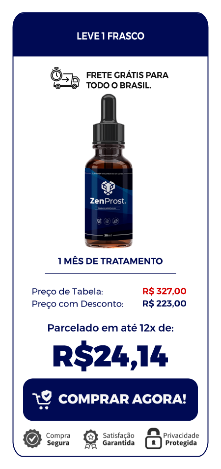O ZenProst foi desenvolvido com os 8 melhores componentes naturais capazes de entregar uma solução permanente para os problemas prostáticos! Essa composição exclusiva no Brasil inteiro, fará a sua próstata ficar igual a de um homem de 30 Anos, como também eliminar permanentemente os sintomas, dores e desconfortos associados a próstata! Sua próstata nunca mais vai ser um problema com o ZenProst!